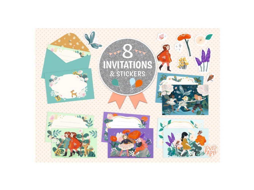 8 × ilustrovaná pozvánka s motivem Garden Friends
