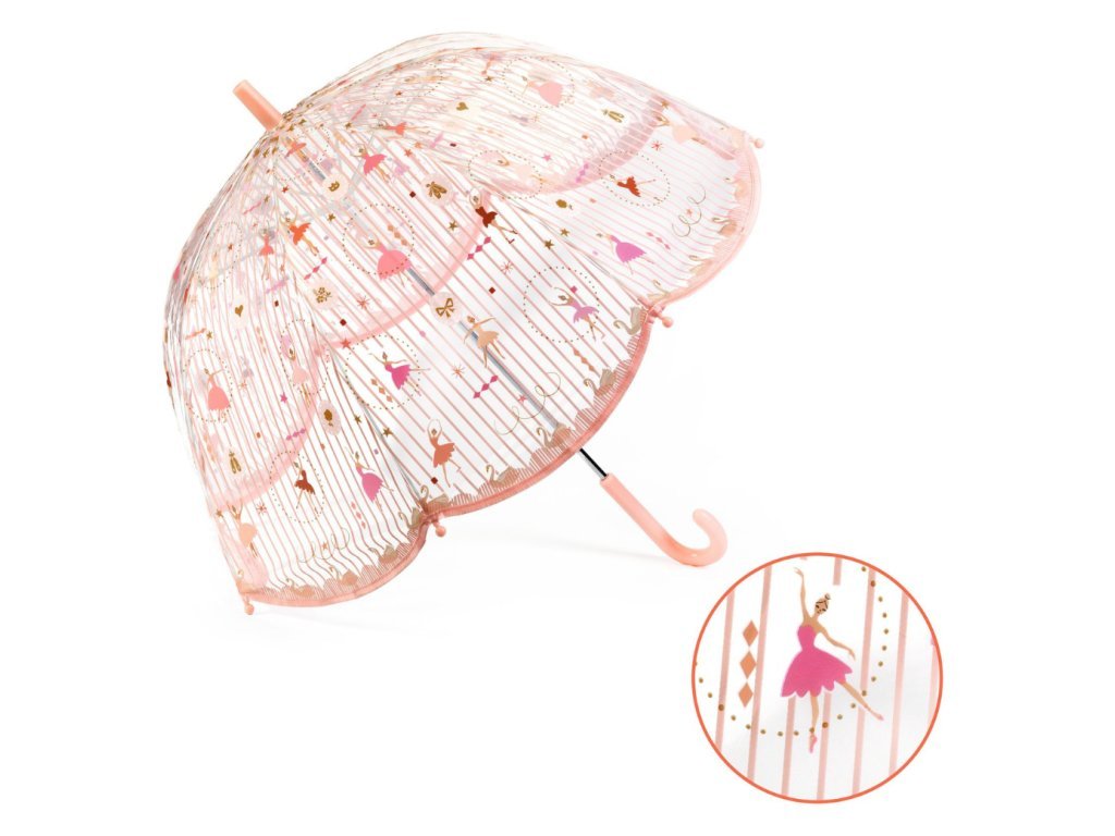 Stylový deštník s ilustracemi baletky, který je nejen krásný, ale také praktický. Díky průhlednému provedení dítě vidí, kam jde, a manuální otevírání s bezpečnostním systémem zabrání skřípnutí prstů. Barevný doplněk, který rozzáří každou deštivou procházku!