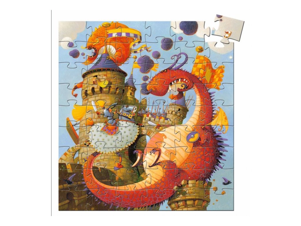 Složte si obrázek draka bojujícího s princem před zámkem. Kdo z nich zvítězí? V praktické a zdobné krabici se ukrývá 54 dílků, ze kterých děti složí obrázek dračí bitvy. Krabička navíc bude krásnou ozdobou každého dětského pokojíčku.