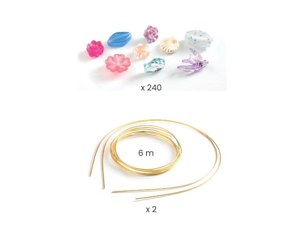 Sada obsahuje 240 korálků, 2 zlaté čelenky a pružnou kovovou niť, ze které vytvoříte 2 nádherné čelenky.