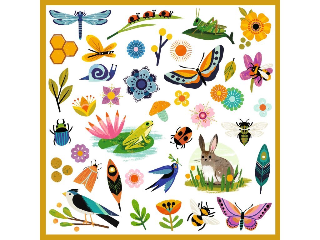Veverky, motýlci, housenky a mnoho dalšího schovaného v zahrádce. V sadě jsou 4 archy, z toho 2 totožné.